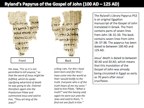 St. John’s Fragment. The Ryland’s Library Papyrus P52. Biblical Evidence.